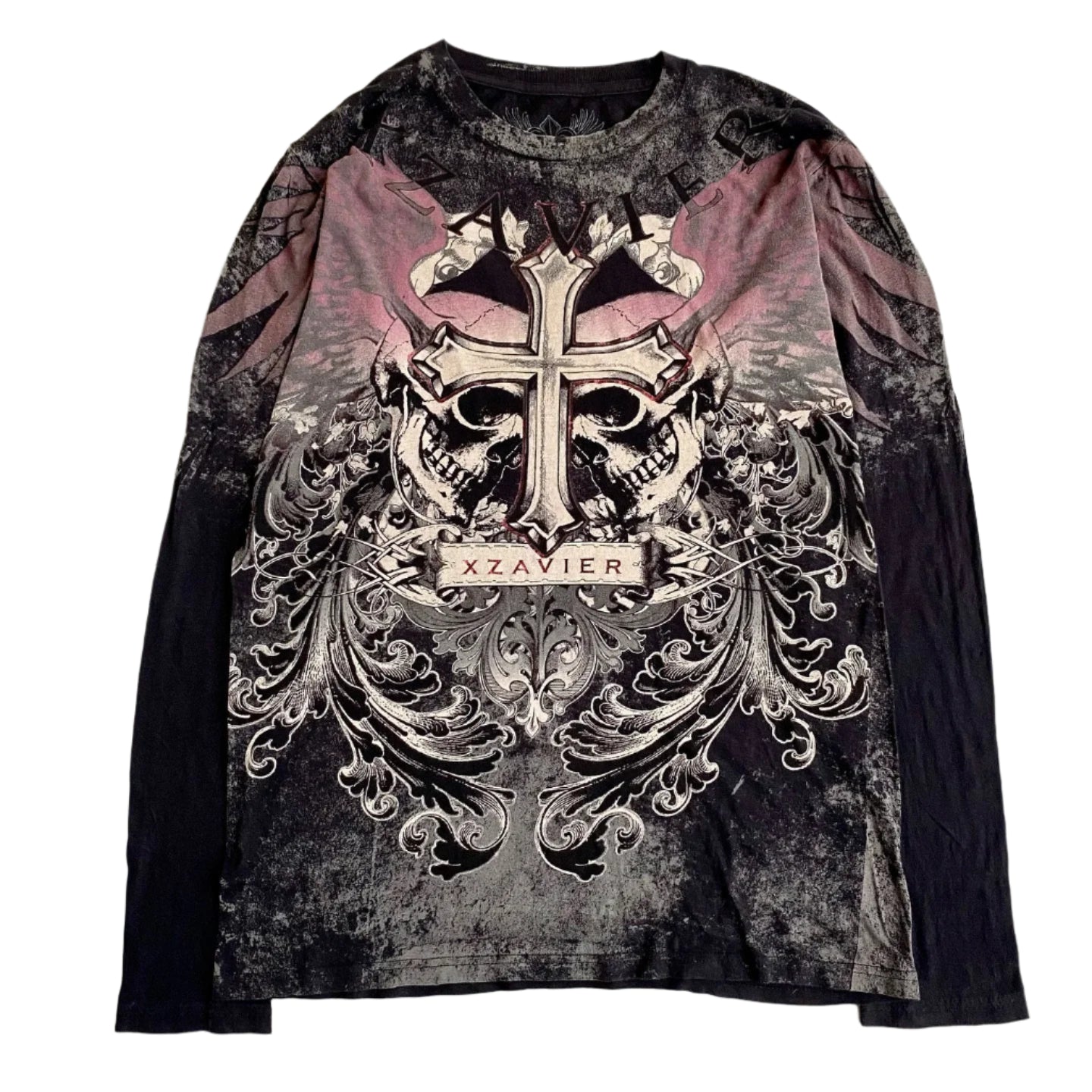 MMA ELITE Y2K Grunge Skull Cross Blue & Black Long Sleeve Tee (XXL)