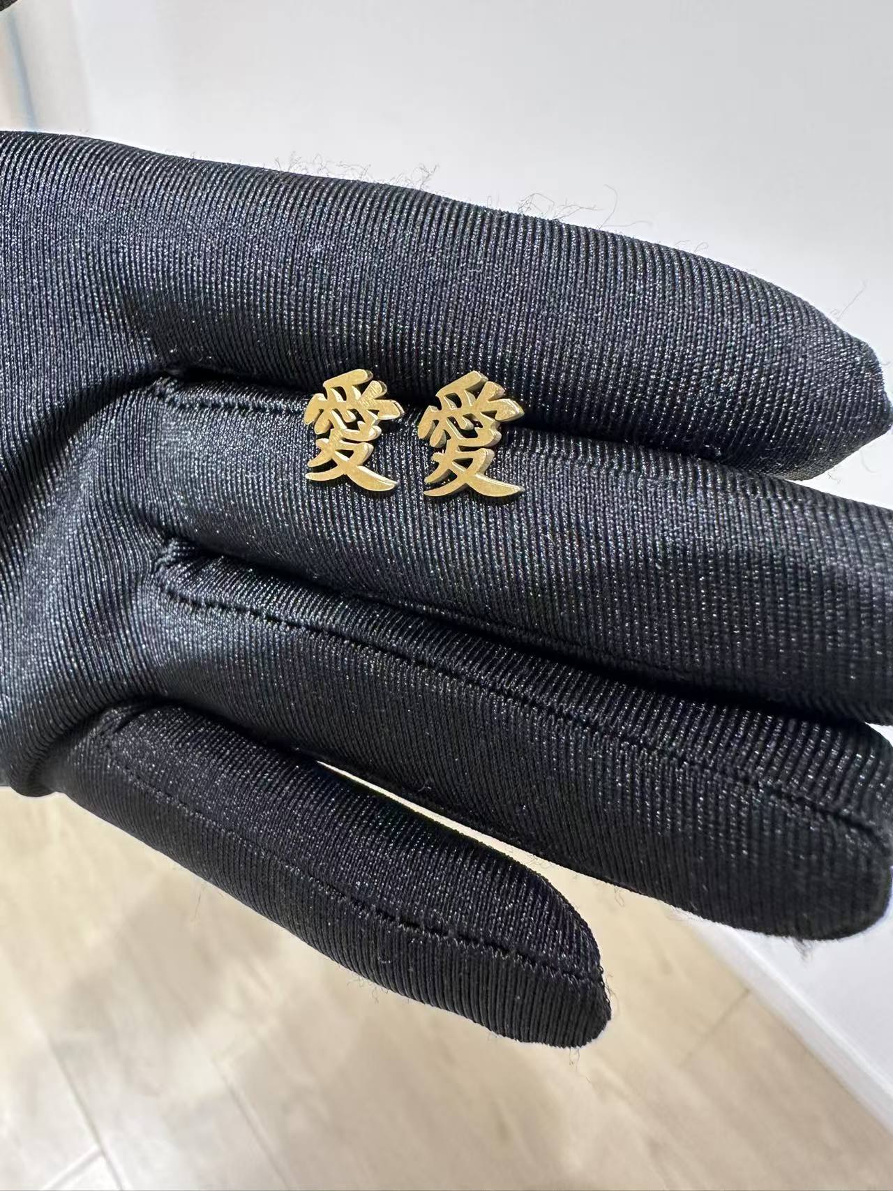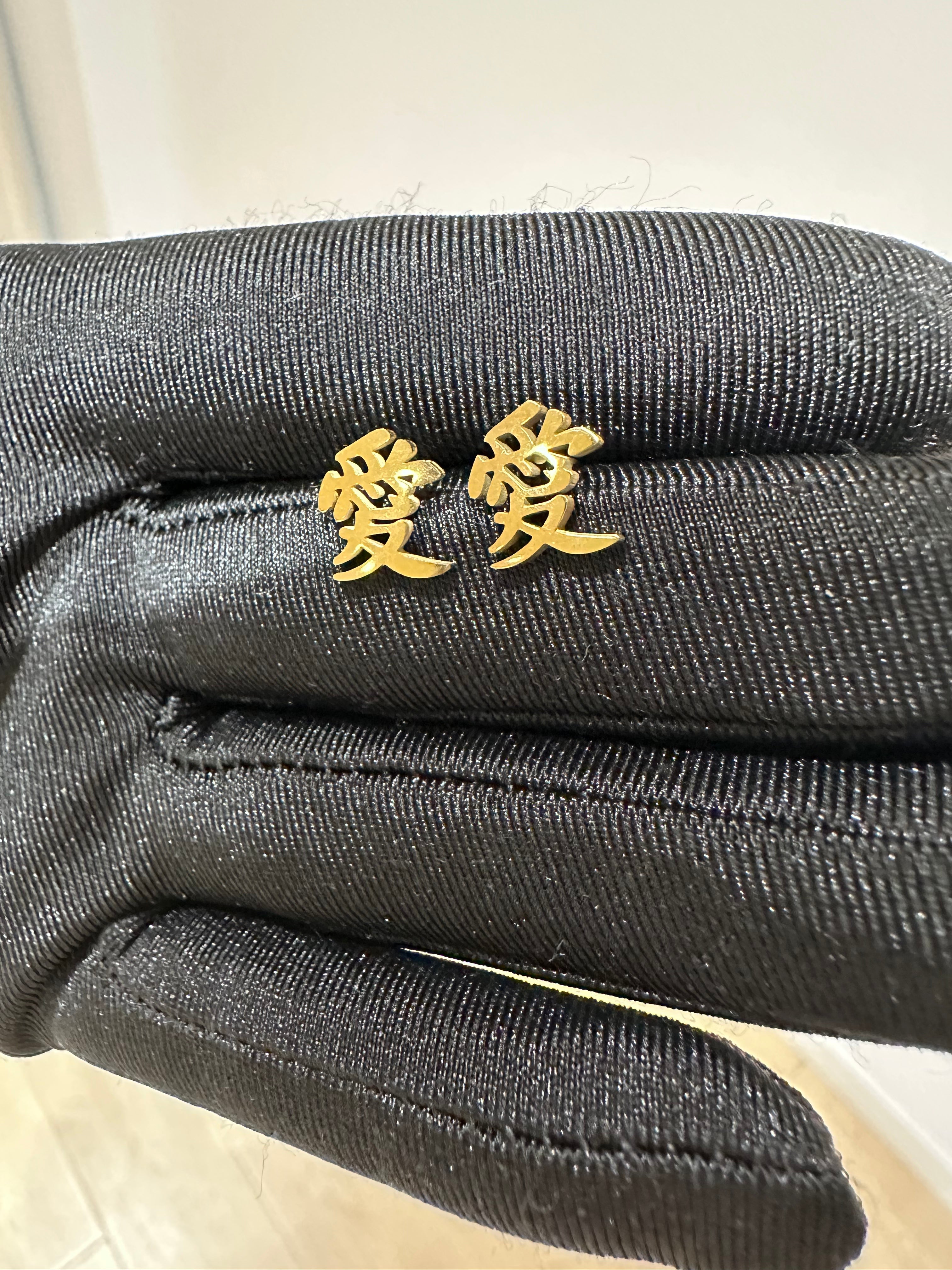 Gold Gaara “Love” Kanji Stud Earrings, Naruto Inspired Jewelry, Anime Cosplay Accessory for Fans, Stainless Steel Japanese Style Earrings